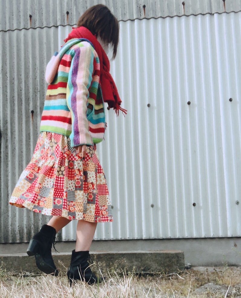 最近は、大人しい色がトレンドですが、たまにこんなカラフルな色の服を着ると、心が弾みます♪