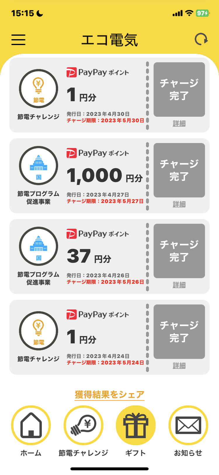 おわ?と思っているのがここからで、国の節電プログラム補助事業とかで、1000pとか貰えてます。これが3ヶ月分とかあったので、なんかお得です🤭