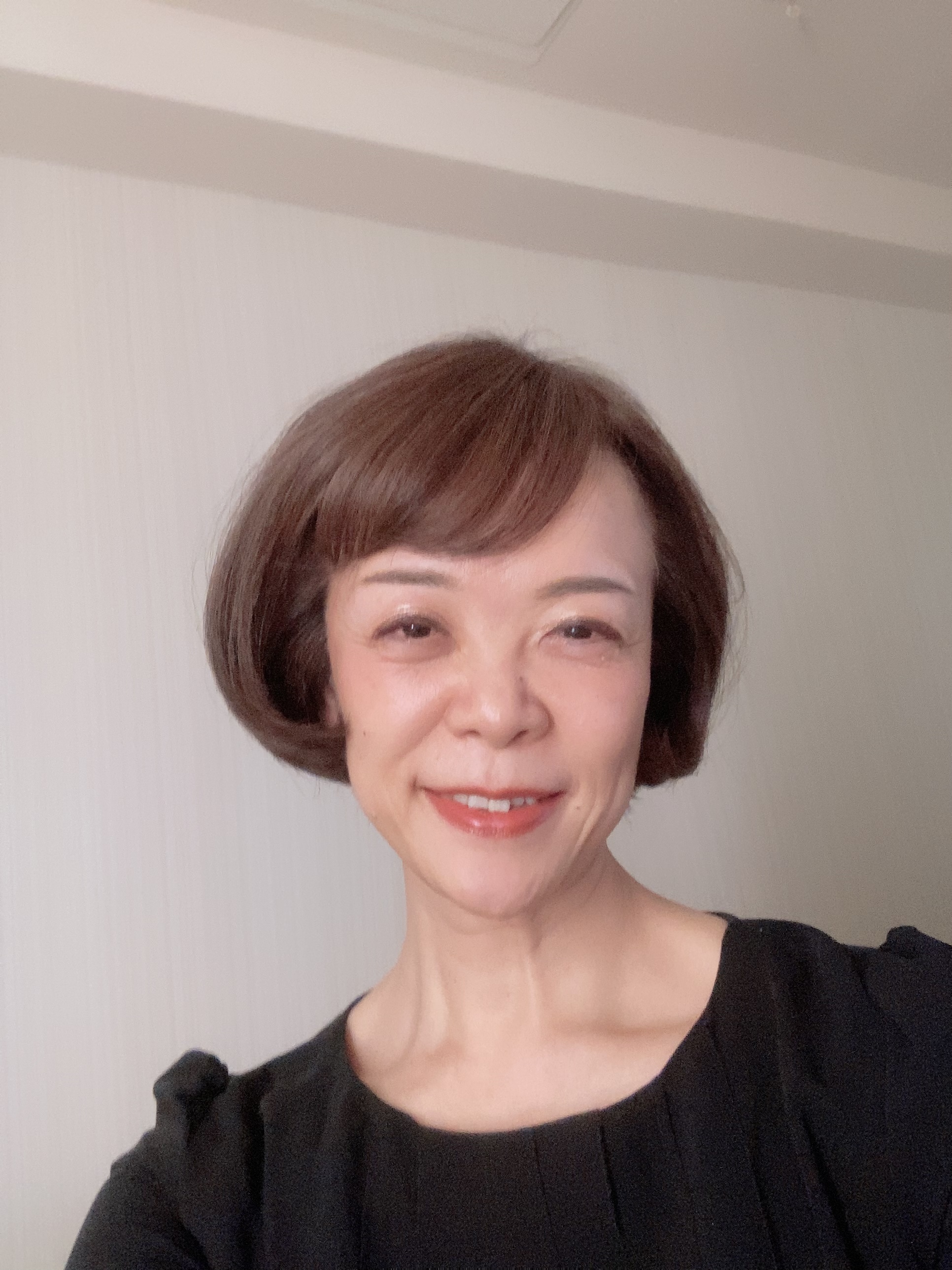 このCMは1960~70年代の海外のターミナル駅が舞台となっていて、私達も、その年代に相応しい衣装を着させていただき、ヘアセットもしていただきました。写真は、撮影が終わり、夜ホテルに帰った時に撮ったものです(洋服は自分のものです)。1960年代の土方萌瑚です。
