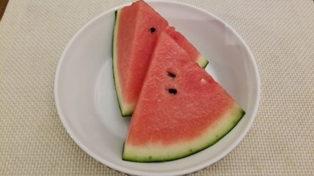 しばらく忘れていたのですが、少し前にたまたまデパ地下でやはり熊本産のカットされたスイカを見つけたので、買って食べてみました。