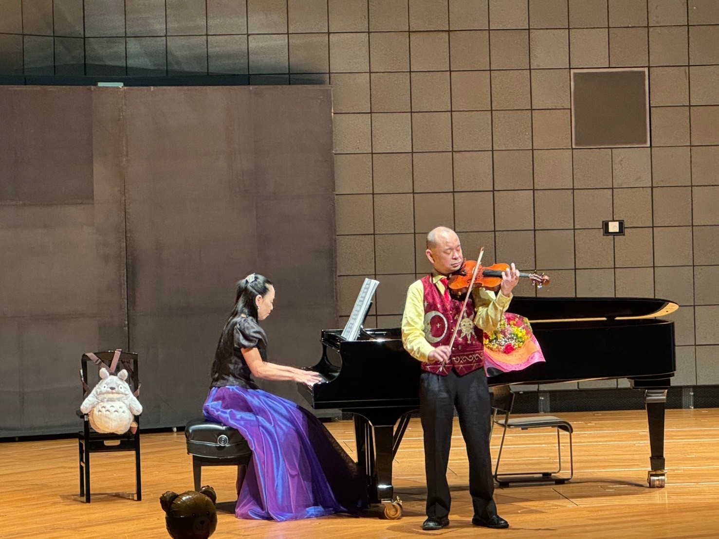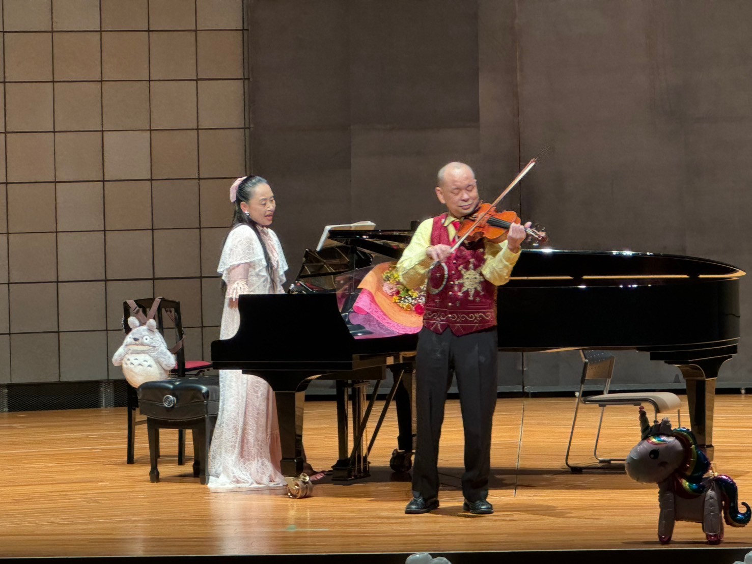 コンサートでは子供たちも素敵な演奏を奏でてくれましたが、私も負けず盲目のバイオリニストの安藤正太郎氏と一緒にセッションを楽しみました。また、ミュージカル風、シャンソン風の歌曲も弾き語り、お客様方に楽しんでいただけたようです。