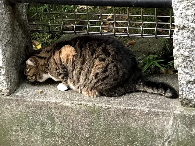 癒されて家を出たら、家の近くの駅までの道で野良猫ちゃんに遭遇。
